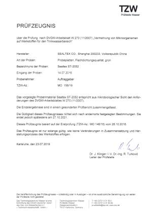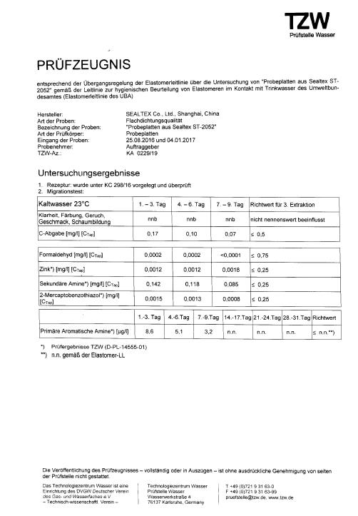 ST-2052無石棉墊片獲得飲用水認(rèn)證KTW,W270