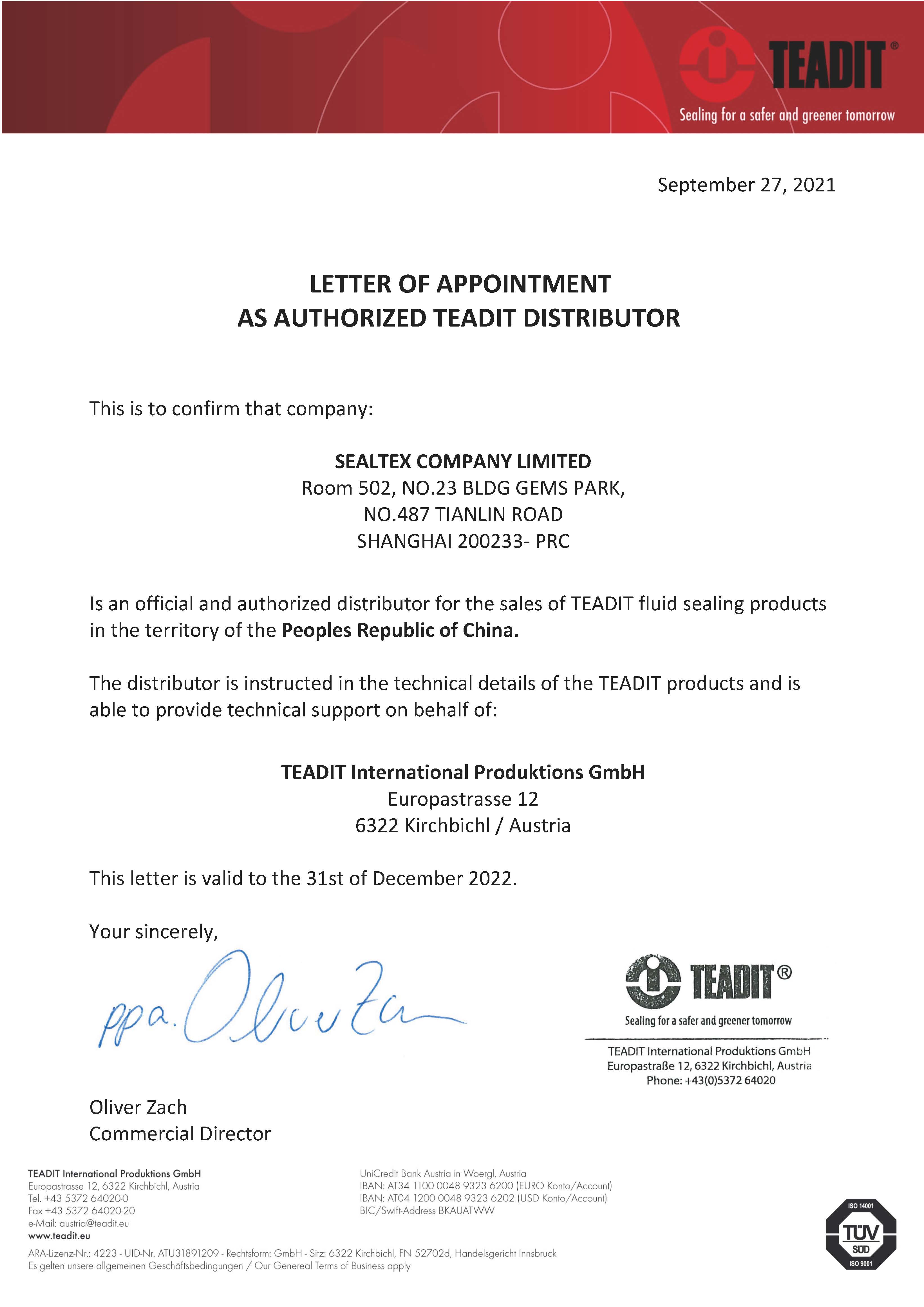 我司與TEADIT(泰迪)簽訂代理合作協(xié)議