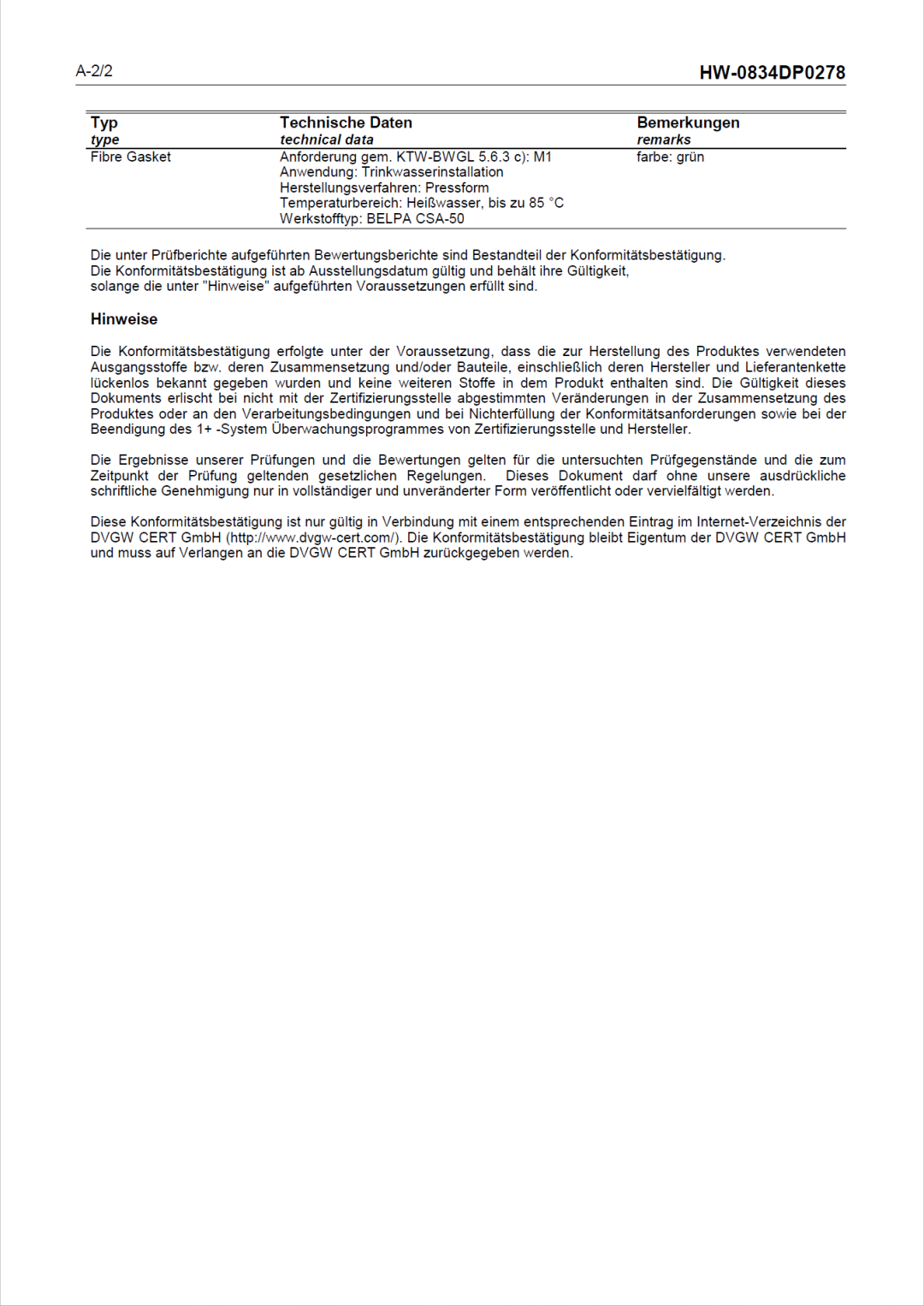 目前,我司合作伙伴西班牙標(biāo)牌BELPA CSA-50無(wú)石棉板已獲得KTW-BWGL認(rèn)證。