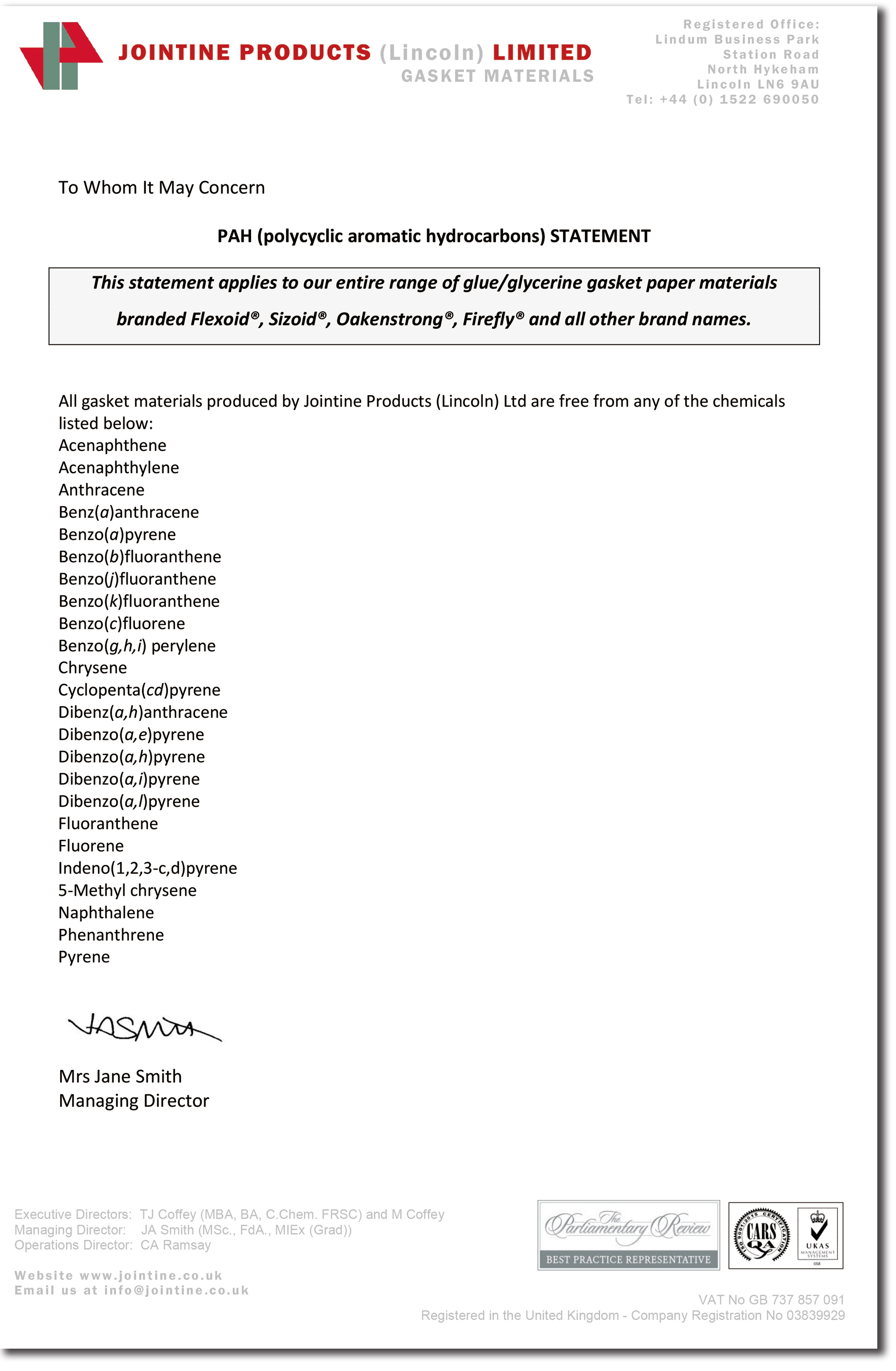 JOINTINE是全球領(lǐng)先的高質(zhì)量耐油植物纖維紙墊片材料制造商,其名下的品牌產(chǎn)品Flexoid/福來德、Cranflex是一種環(huán)保的耐油纖維紙墊片材料,可廣泛應(yīng)用于汽車、發(fā)動(dòng)機(jī)、傳動(dòng)設(shè)備等行業(yè),如下是JOINTINE發(fā)布的環(huán)保聲明函。